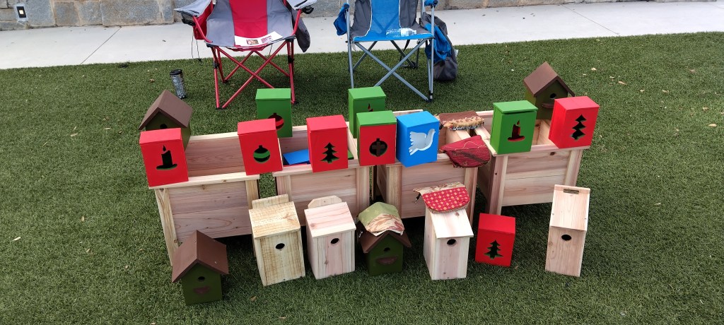 Deck rail planter and bird houses